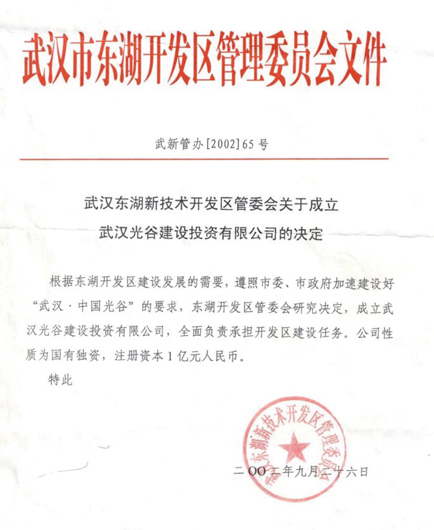 武漢光谷建設(shè)公司組建請(qǐng)示獲得上級(jí)部門批準(zhǔn)。