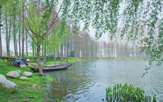 實(shí)施周店社區(qū)至南湖南路段36萬平方米綠化施工。