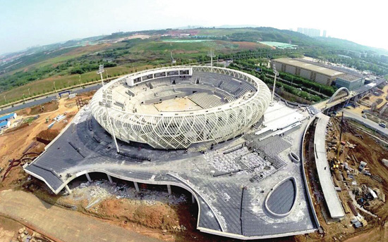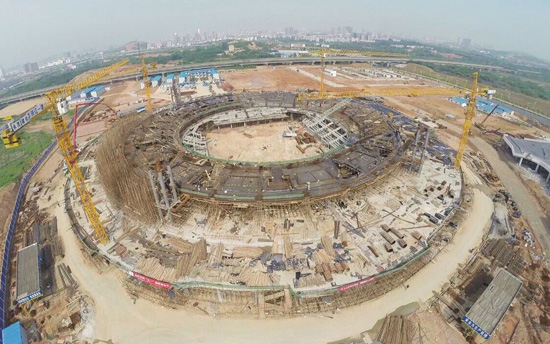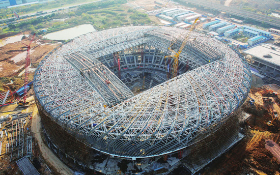 光谷國際網(wǎng)球中心中央球館正式封頂。