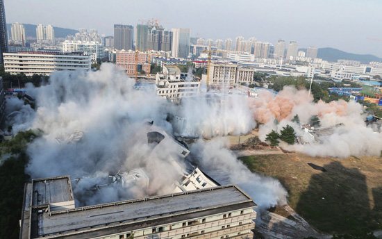 位于雄楚大街與光谷大道交會(huì)處的武漢交通學(xué)校(北區(qū))群樓成功爆破,標(biāo)志著東湖高新區(qū)建筑工程領(lǐng)域首次重大爆破行動(dòng)成功實(shí)施。