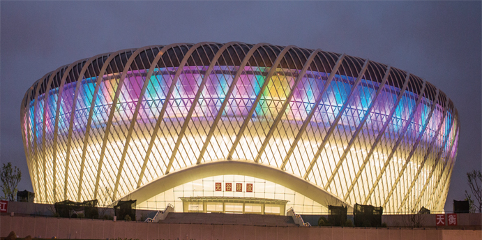 武漢光谷國際網(wǎng)球中心中央球館進(jìn)入活動(dòng)屋蓋初步調(diào)試階段。