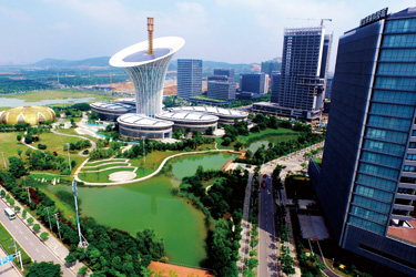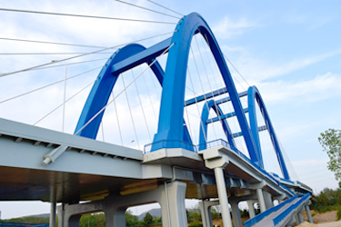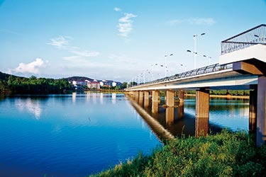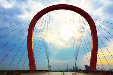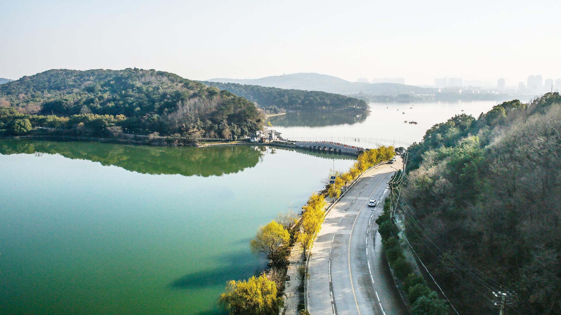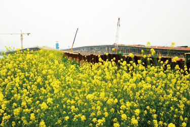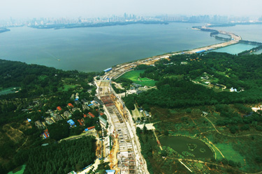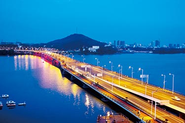 風(fēng)檣動(dòng), 龜蛇靜, 起宏圖。一橋飛架南北,天塹變通途。更立西江石璧,截?cái)辔咨皆朴?,高峽出平湖。神女應(yīng)無恙,當(dāng)驚世界殊。1957 年, 武漢長江大橋建成, 毛澤東稱之為“一橋飛架南北, 天塹變通途”,它形象地描述武漢長江大橋的雄偉氣勢及其在我國南北交通方面發(fā)揮的重要作用。在光谷建設(shè)人14 年的辛勤耕耘下,如今光谷大橋、九龍大橋等城市坐標(biāo)的橋梁已飛架在東湖高新區(qū)的熱土上,使光谷內(nèi)外通達(dá)。